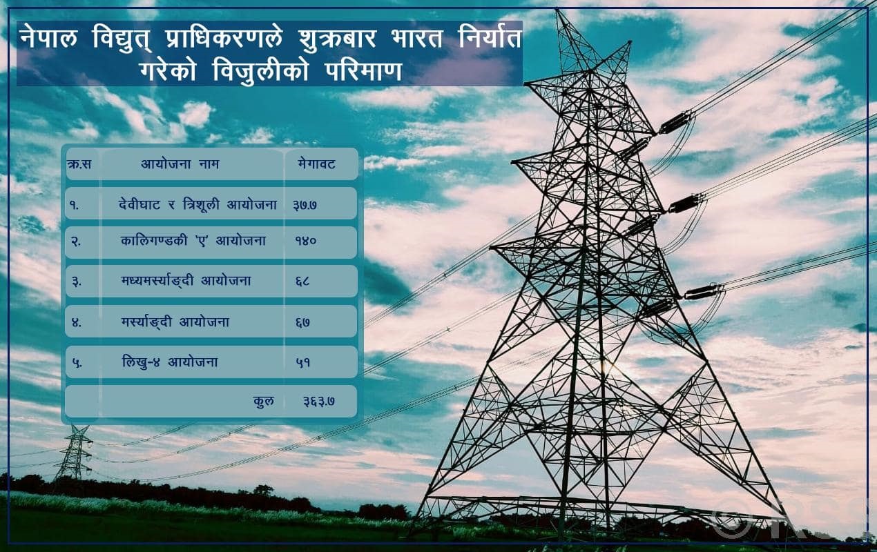 प्राधिकरणले बिहीबार २८४ मेगावाट बिजुली भारत निर्यात गर्दै