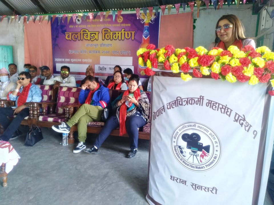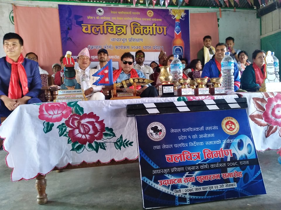 नेपाल चलचित्रकर्मी महासंघ प्रदेश १ को आयोजना र नेपाल चलचित्र निर्देशक समाजको संयोजनमा आज सोमबारदेखि २८ गतेसम्म प्रदेश नं.१ का १४ जिल्लाका चलचित्र निर्माणसँग इच्छा राख्ने नयाँ प्रतिभाहरुको लागि आधारभुत चलचित्र निर्माण प्रशिक्षण (क्र्यास कोर्स) कार्यक्रम सञ्चालन भइरहेको छ।